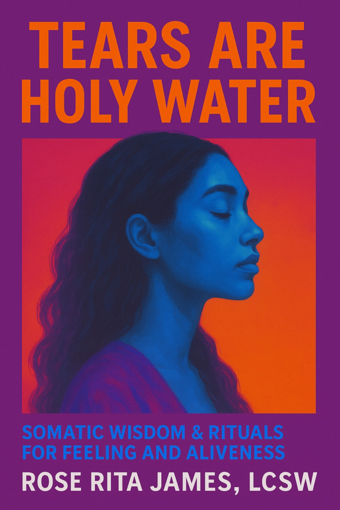 In Tears Are Holy Water: Somatic Healing Rituals for Feeling and Aliveness, trauma therapist and somatic practitioner Rose Rita James, LCSW, MSW, MAT, offers an invitation to return home to your body. Drawing on neuroscience, poetic storytelling, and ancestral ritual, this book reframes emotions not as problems to fix, but as sacred messengers that lead us back toward aliveness. Through a careful blend of nervous system education, somatic practices, creative expression, and cultural wisdom, Rose Rita James guides readers through their tender inner terrain with reverence and skill—toward a place where trauma healing is approached not as a project of self-improvement, but as a sacred act of remembering.
